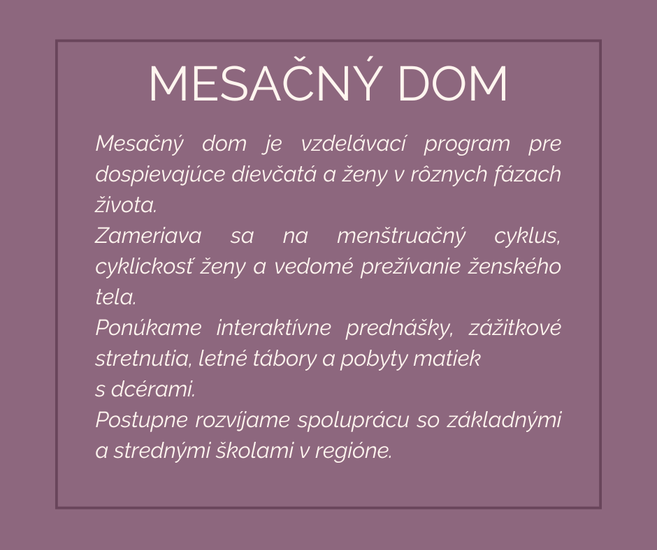 V projekte Mesačný dom nás spojilo okrem priateľstva rodičovstvo a dospievanie našich detí. Doviedlo nás k poznávaniu tém spojených s pubertou a vlastnou cyklickosťou.